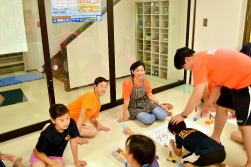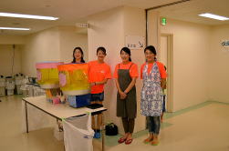 お出迎えの準備中も笑顔がはじけます!!子供たちを楽しませたいという想いからですね。