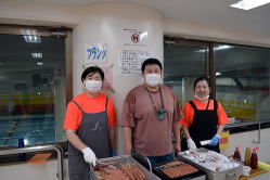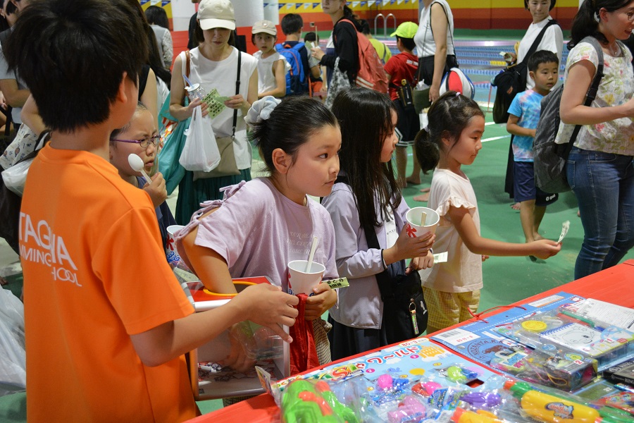 屋台の「食」コーナーとプールサイドでの「お楽しみ」コーナーで楽しんでいただきました。初めて参加の方、久しぶりに参加した皆様、たくさんの笑顔であふれていました。 ご参加ありがとうございました!! |