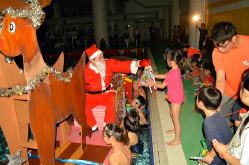 今年も水上ソリに乗ったサンタさんがみんなにプレゼントを配ってくれました! どんなプレゼントをもらったのかな?