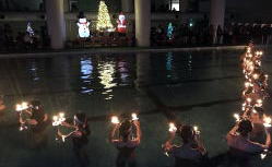 水中キャンドルのダンスはアナ雪2の曲に合わせて幻想的に舞われました。
