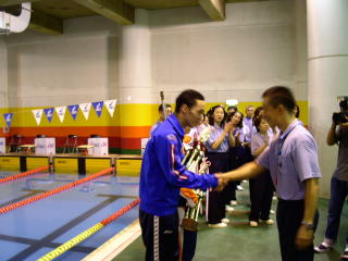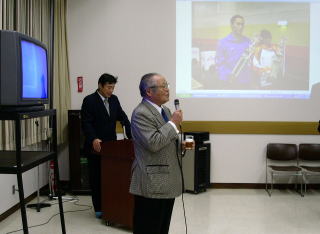 | アテネオリンピックの800m自由形の金メダリスト柴田亜衣選手を育てた鹿屋体育大学の田中教授が参加されました。柴田選手との出会いは、世田谷SSの村尾社長からの紹介であったことやオリンピックで金メダルを取るための苦労話等を熱弁されました。 | 東京都水泳協会会長:菊池章氏より世田谷SS招待が 東京都の水泳レベルの向上に貢献しているとのお話が ありました。 |